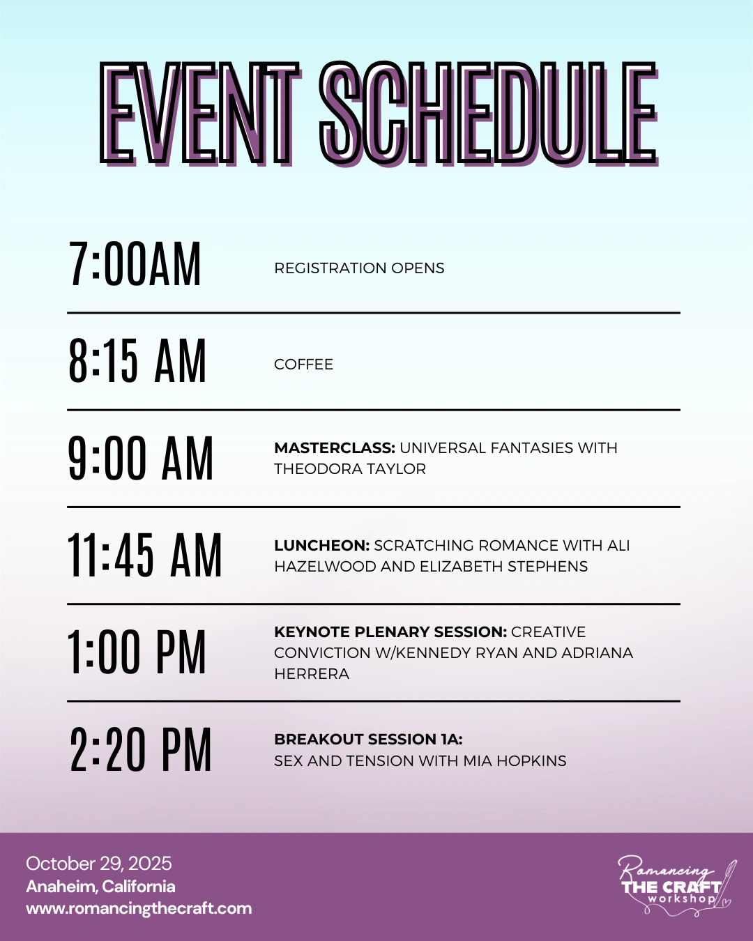 Romancing the Craft is a one-day conference aimed toward marginalized unpublished and published romance authors which offers them programing to develop their craft, to learn from masters of the genre, and advance their careers through valuable networking opportunities with peers and other industry professionals.